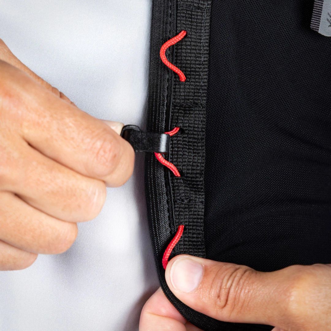 Mantiene la cantidad de bolsillos y compartimentos de su versión anterior, pero ahora ofrece mayor practicidad y accesibilidad al duplicar la capacidad frontal: incorpora dos nuevos bolsillos delanteros diseñados para llevar alimentos, soft flasks adicionales, el celular o cualquier elemento esencial para entrenamientos o competiciones.