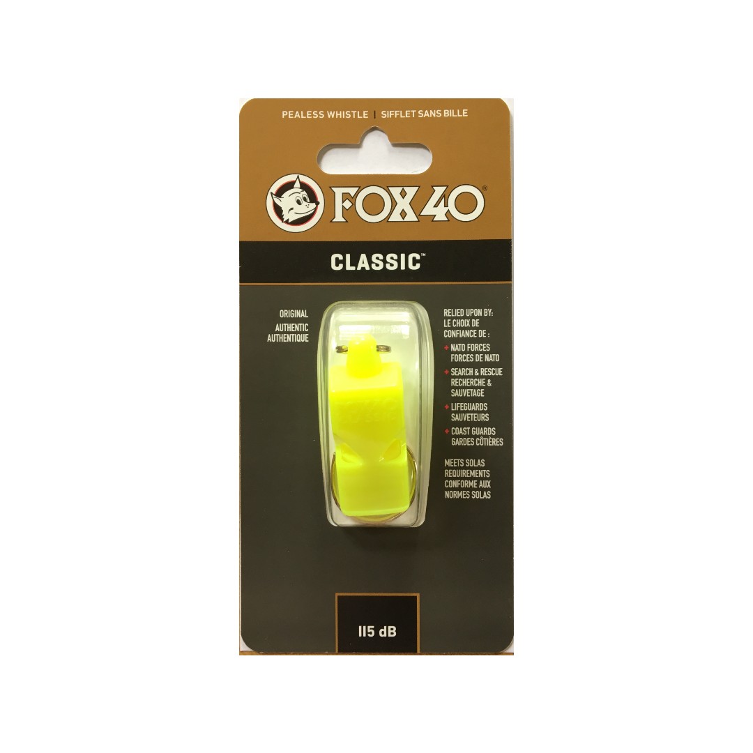 El Silbato Fox40 Classic es el primer silbato sin bola patentado. Desarrollado por la marca canadiense FOX40 especializada en silbatos y fundada por el árbitro de baloncesto Ron Foxcroft en 1987.